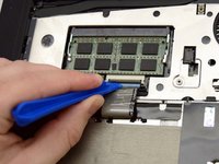 Insert a plastic opening tool in the seam between the keyboard and laptop body.