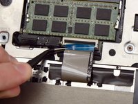 Locate the ribbon cable connecting the keyboard to the motherboard.