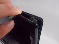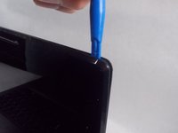 Using the opening tool, pry open the plastic screen border, beginning with the upper right hand corner then working your way around.