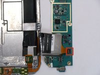 Lift up the back latch on this connection and the orange ribbon should slide right out without any effort thus disconnecting the board.