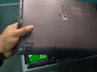 Continues releasing all of the tabs at the edges until the base of the laptop breaks loose.