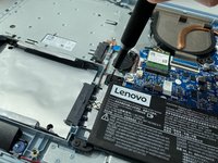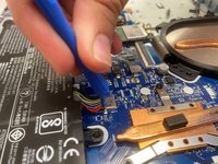 Disconnect the battery cable from its motherboard socket by gently pulling it towards the battery.