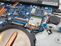 • Unplug the two coaxial cables on the WiFi card by gently pulling the cables directly up.