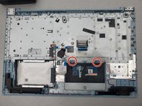 Remove the two 2.5mm Phillips #0 screws from the upper edge of the trackpad.