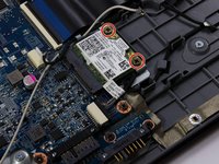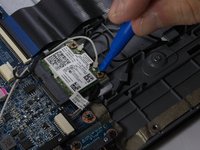 There are two (30 mm) screws attached to the wireless card underneath the antenna. Remove both of these with your screwdriver (bit PH1).