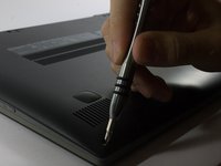 Start by removing the feet near the LCD hinge of the laptop to reveal two screws.