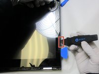 • Once you've worked around the perimeter, lightly pull on the suction handle while gently prying with an opening tool until the display releases.