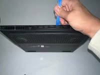 Starting from the back of the laptop slide your opening tool between the bottom cover and laptop chassis.