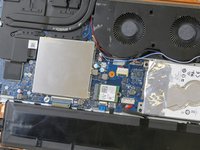 There will be a silver square box next to the fan. Use a plastic spudger to pry the small tabs on the side that are holding the silver square on.
