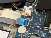 Use your prying tool or a spudger to flip up the FFC bail, the tiny black clamp shown here.