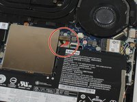 Disconnect the battery cable from its motherboard socket by gently pulling it towards the battery.