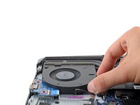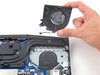 Use a Phillips screwdriver to remove the two 5.7 mm‑long screws securing the left fan.