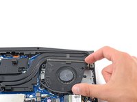 Use a Phillips screwdriver to remove the two 5.7 mm‑long screws securing the right fan.