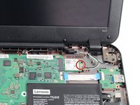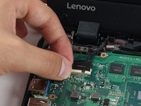 Disconnect the display cable from the motherboard by lifting up the black ZIF connector retaining flap.