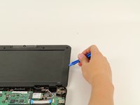 Run the plastic opening tool along the seam between the keyboard and the bottom of the Chromebook until the keyboard moves freely. Several tabs will pop out.