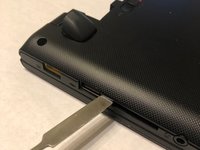 Use the long metal spudger to pry open the bottom half of the laptop.