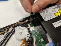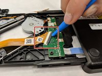 Use the iFixit Opening Tool to flip up the grey locking flap on the ZIF (zero insertion force) connector to allow removal of the ribbon cable.