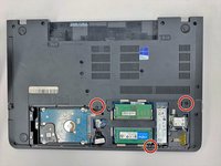 Loosen two captive 5 mm screws on the back panel of the laptop using a Phillips #0 screwdriver.