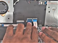 Pull up keyboard from the casing and flip it towards you to access its cables.
