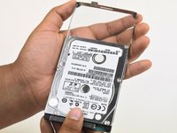 To replace the hard drive, remove the four M2 × 4mm wafer-headed screws on the sides of the hard drive case using a Phillips #00 screwdriver.