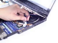 Remove three M2x3 mm screws using a Phillips #00 screwdriver from the base of the laptop near the opening.