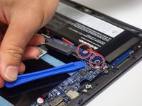 Remove the two M2 x 3 mm, wafer-head, nylon-coated screws that hold down the hard drive assembly using the Phillips #0 screwdriver.