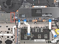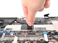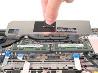 Use a clean fingernail or the flat end of a spudger to flip up the locking flap on the trackpad interconnect cable connector, labeled "JCP1."