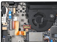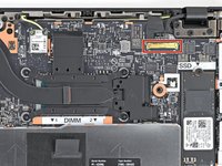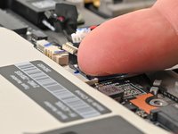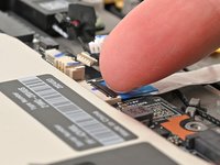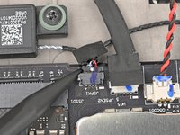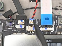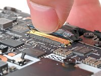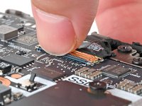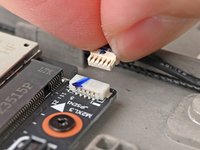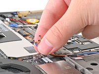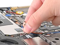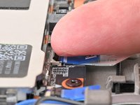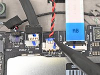 Insert the flat end of a spudger or a clean fingernail under a short edge of the interconnect cable press connector (located on the motherboard) and pry up to disconnect it.