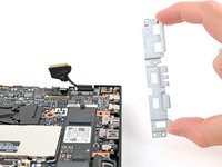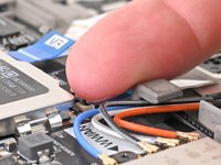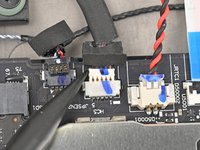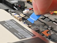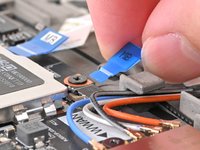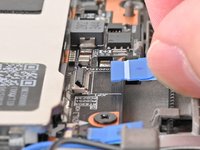 Use your fingernails to grip the right speaker connector by the lip near the back and gently pull the connector out of its socket (labeled"JSPK1").