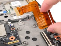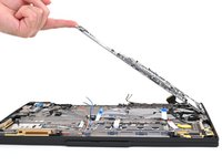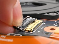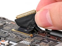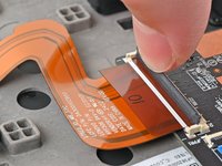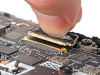 Use a clean fingernail or the flat end of a spudger to gently push under and lift the metal buckle of the display cable connector to unclip it.