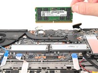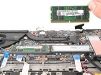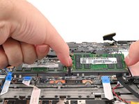 Use your fingers to simultaneously push the two metal tabs on the edges of the RAM module down and outwards to unlatch them—the RAM should pop up at a slight angle.