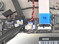 Use your fingernails to grip the WWAN antenna connector by the lip near the back and gently pull the connector out of its socket (labeled "JPSEN2").
