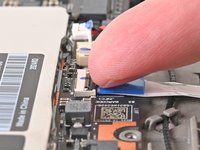 Use your fingernails to grip the right speaker connector by the lip near the back and gently pull the connector out of its socket (labeled "JSPK1").
