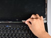 Using the plastic opening tool, gently pry off the plastic LCD screen frame around the entire perimeter.