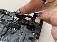 Unscrew the single, 3.0 mm screw with a Phillips #1 screwdriver bit that holds the charging port housing into place.