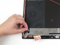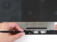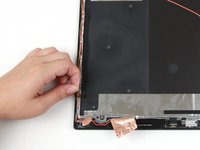 Use your fingers to peel the small copper tape up from the display assembly in the bottom left-hand corner.