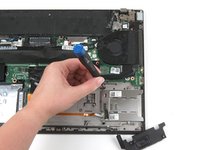 Insert the flat end of a spudger in between the bottom cover and the rest of the laptop, starting in the lower left corner.