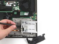Remove two 5 mm screws from the speaker in the lower right-hand corner using a Phillips #1 screwdriver.