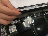Unplug the two-wire connector from the motherboard by gently pulling it towards the battery.