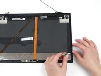Use your other hand to remove the blue wire from its slots along the right side of the display assembly.