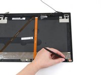 Use a spudger to pry the WLAN antenna away from the display assembly in the bottom left-hand corner.