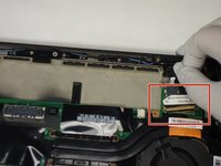 Use a Phillips #0 screwdriver to remove the single 3.3 mm screw on the top right corner of the motherboard.