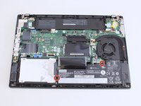 Use a Phillips #1 screwdriver to remove the two 4.6 mm screws that secure the internal battery to the frame.
