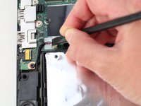 Using the black nylon spudger, unlock the second ribbon connector and slide it out from the port.
