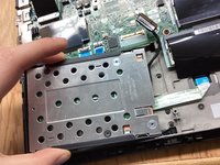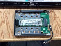 Pry up on the left side of the SSD casing. Pull the casing to the left, and remove.