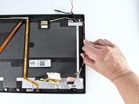 Pry the metallic tape and the black and blue antenna from the LCD Unit.