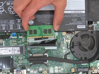 Slide the replacement RAM stick in and place the black flap back over it to begin reassembling your device.