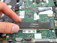 Use a Phillips #1 screwdriver to remove the 3.7 mm-long screw holding down the SSD.