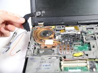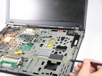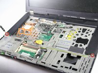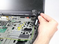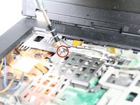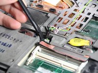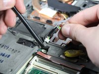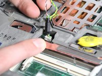 Locate the plug in the middle of the laptop that connects both the left and right speakers.