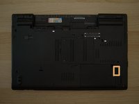 Using a Philips M2 screwdriver, remove the 2 screws highlighted in yellow. The bottom screw is underneath the hard drive, which should have already been removed.